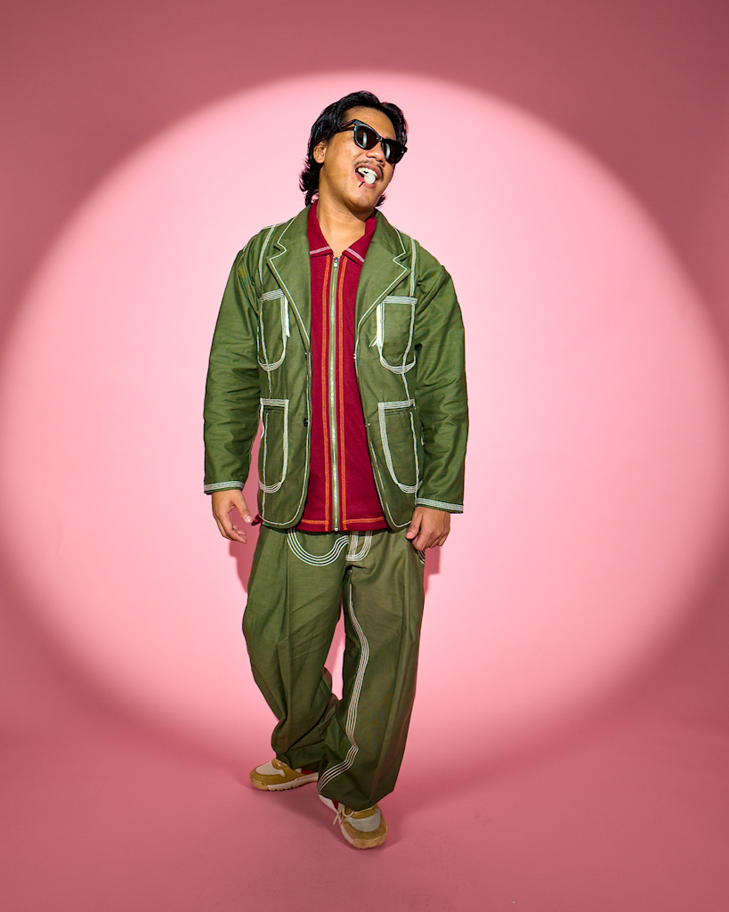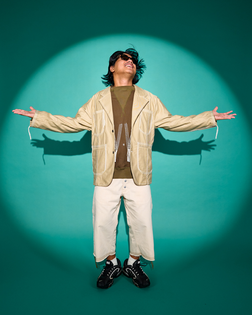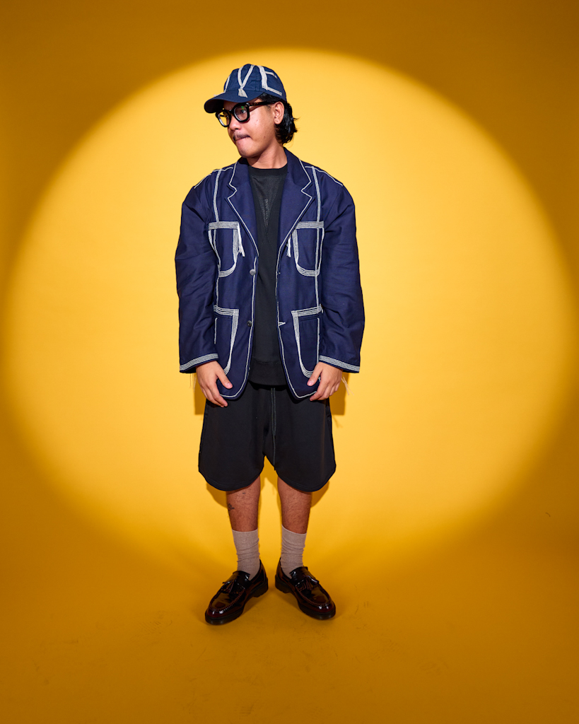 Theta Wave Blazer“FWWD” Raglan Crewneck SweaterAlpha Brainwave Side-Pleat Shorts