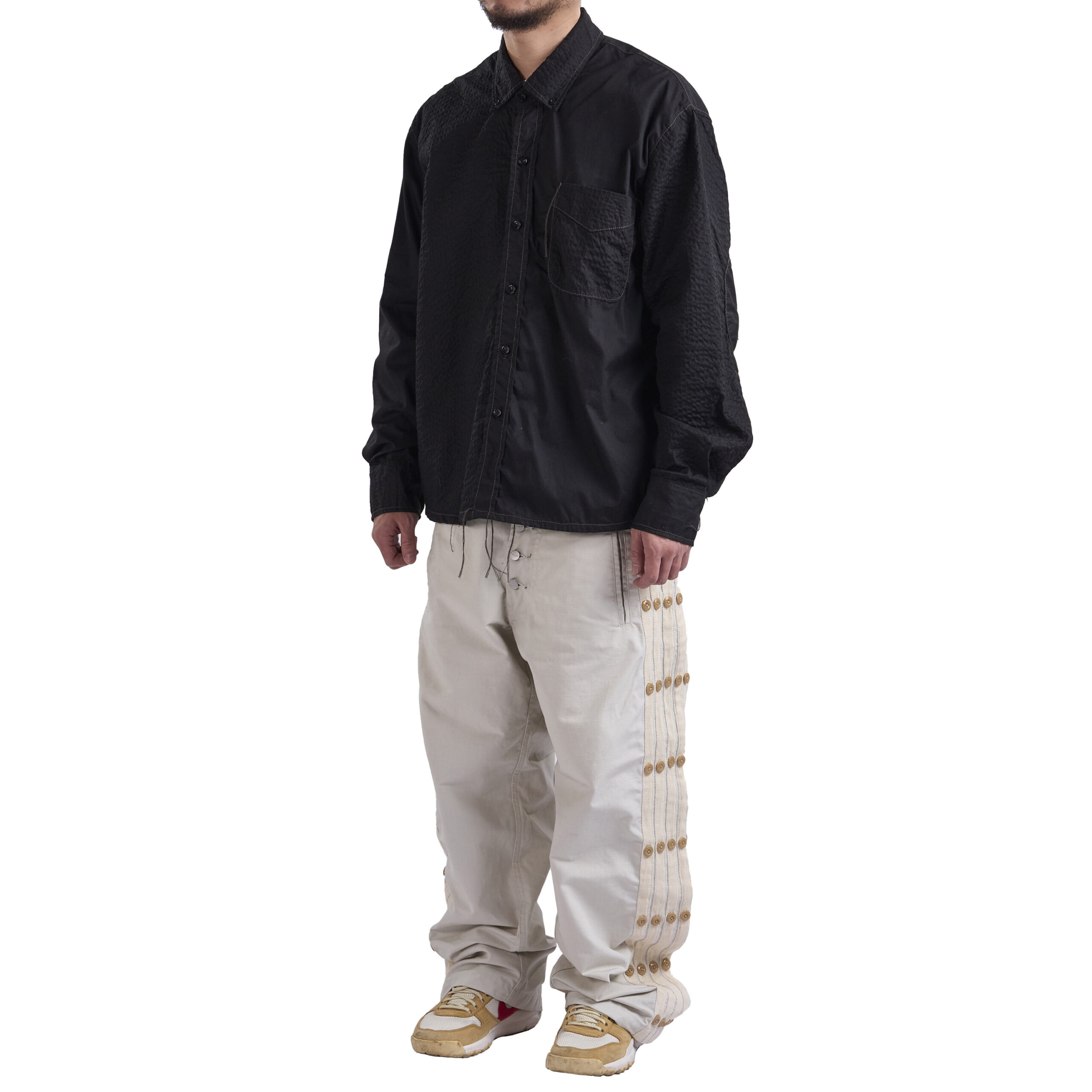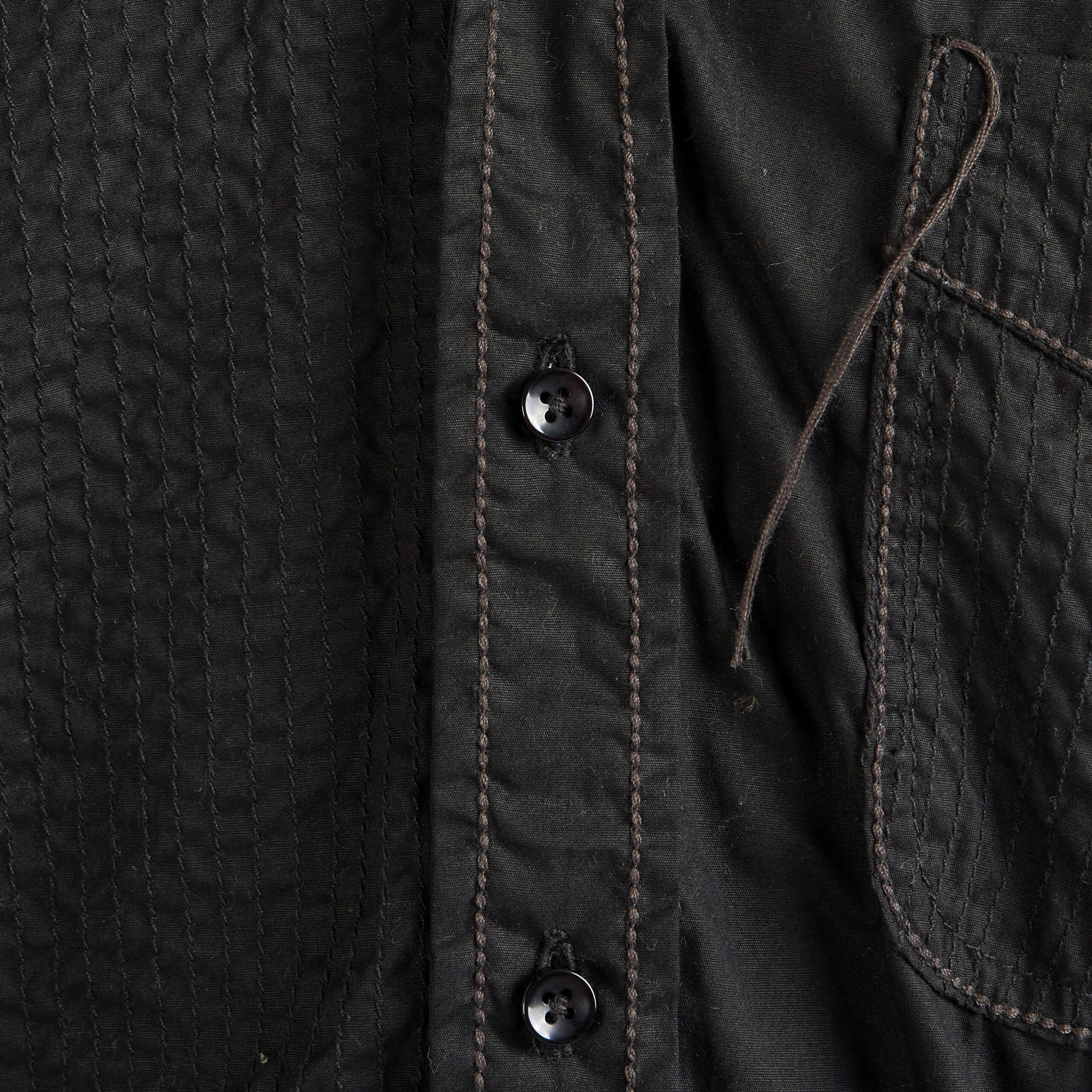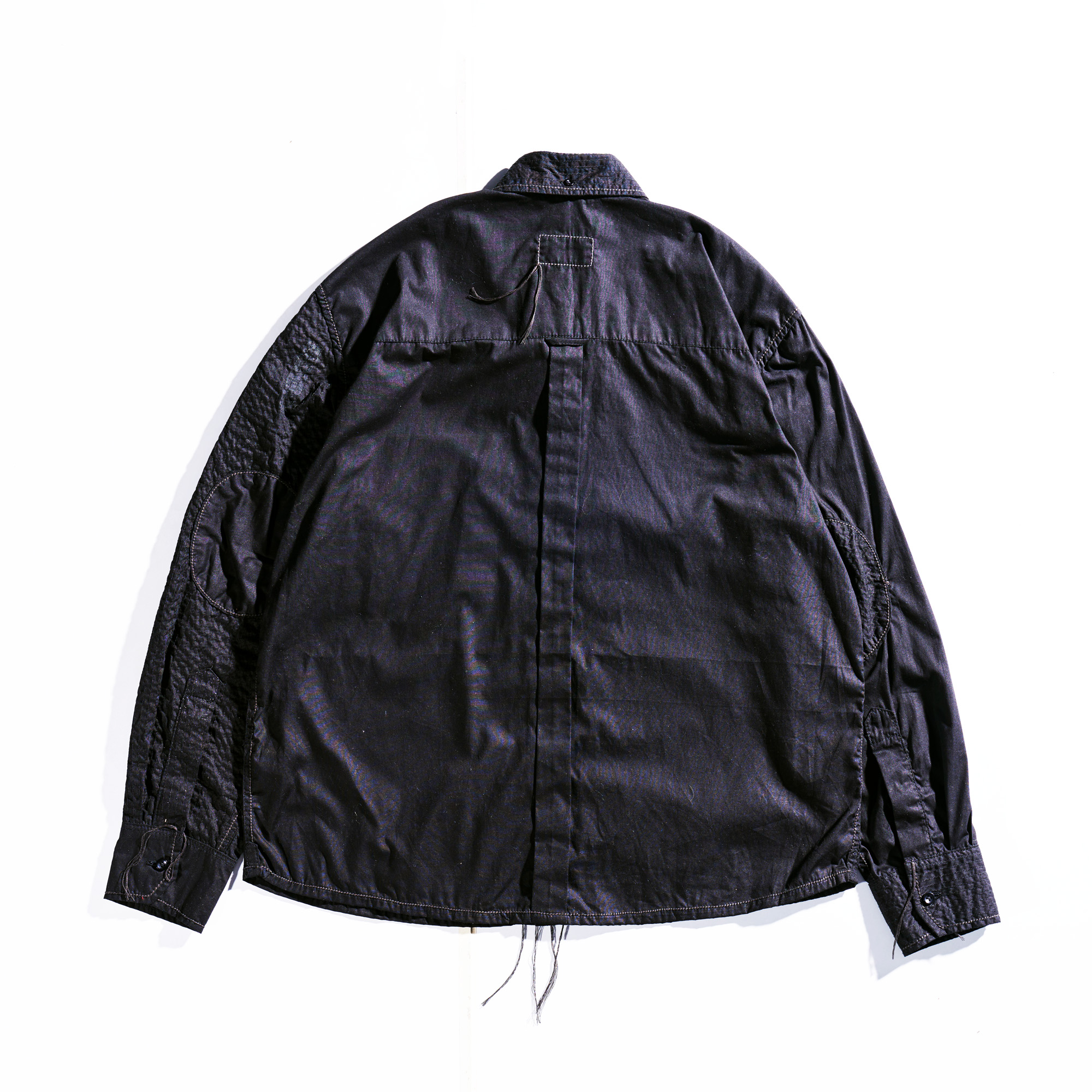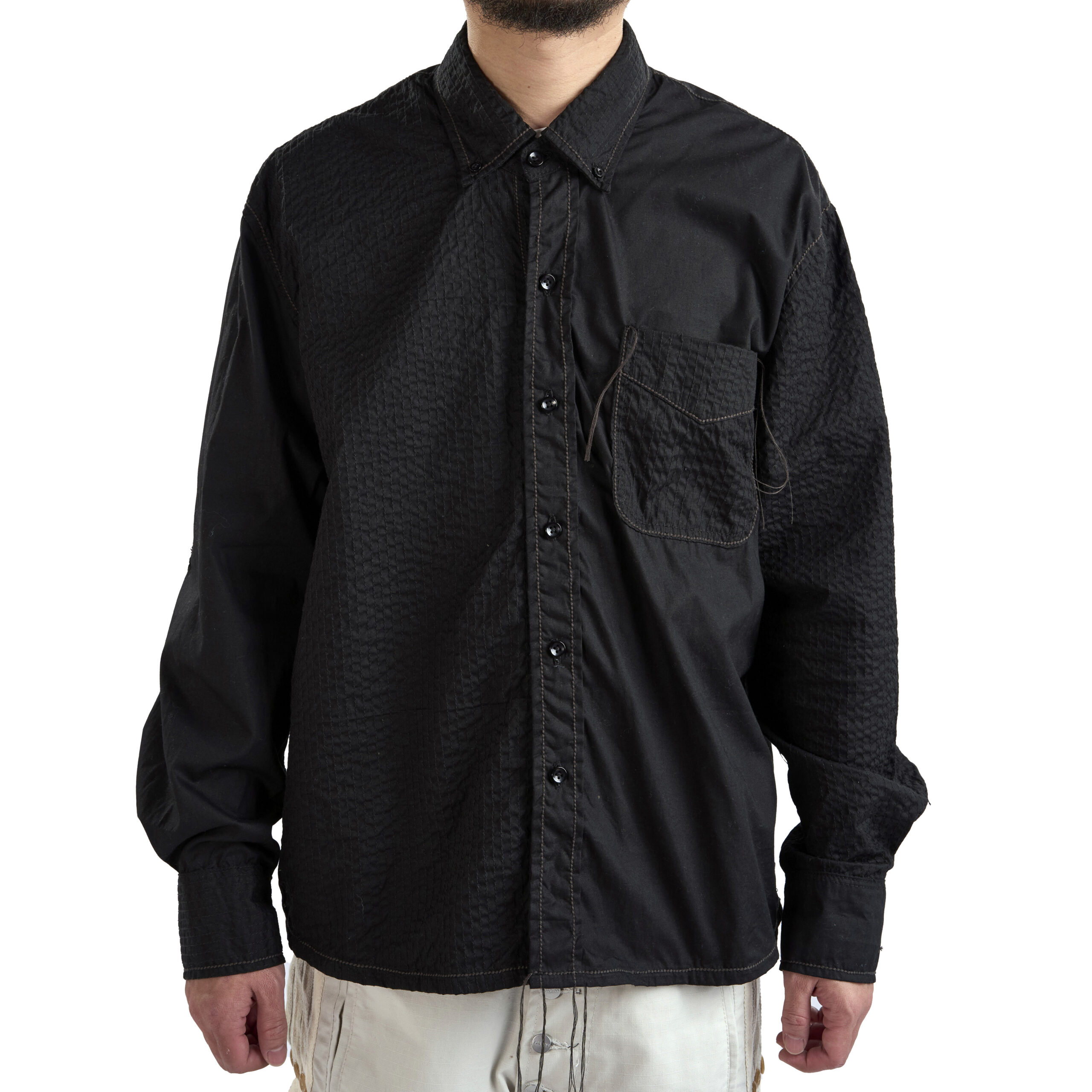 A tonal construction with a button-down collar and contrast rope stitch detailing (tonal rope stitch fringe detail) that adds subtle texture. A chest pocket and elbow patches introduce practical utility, while button cuffs complete the refined finish.