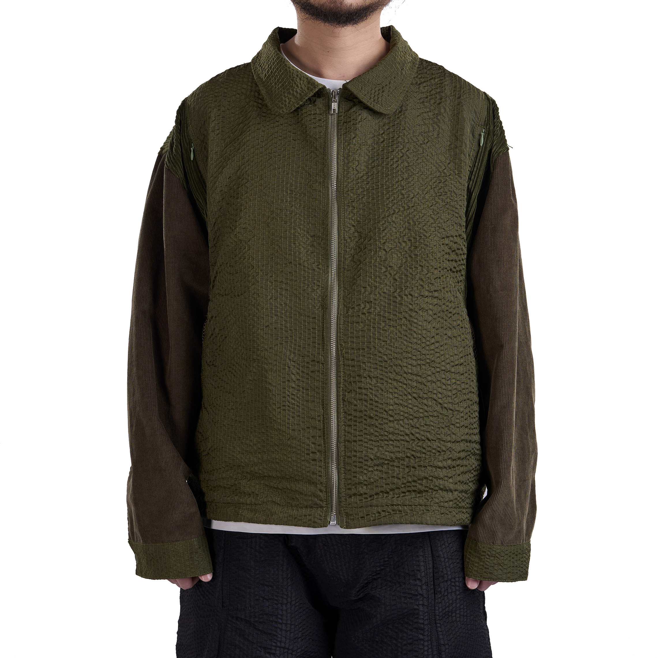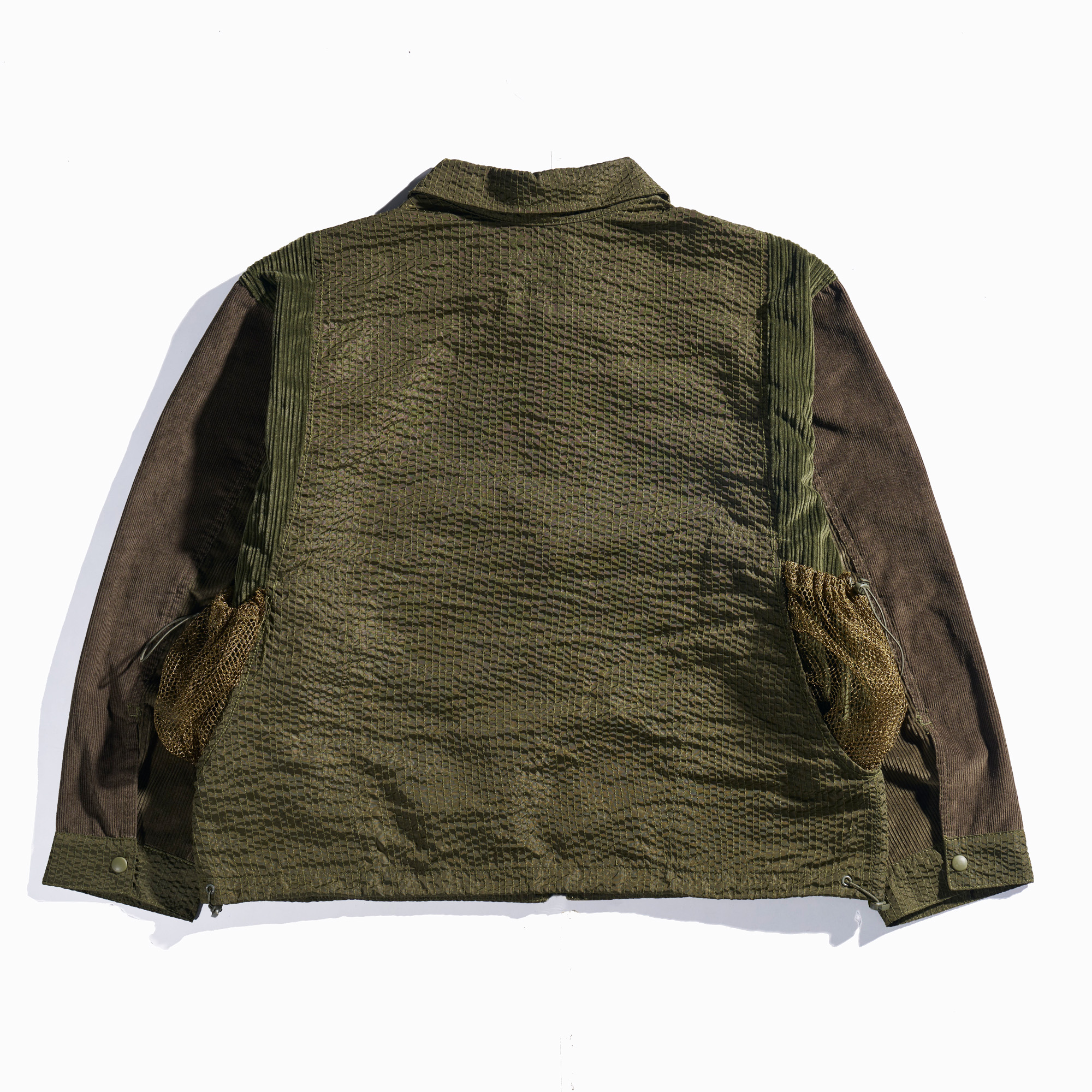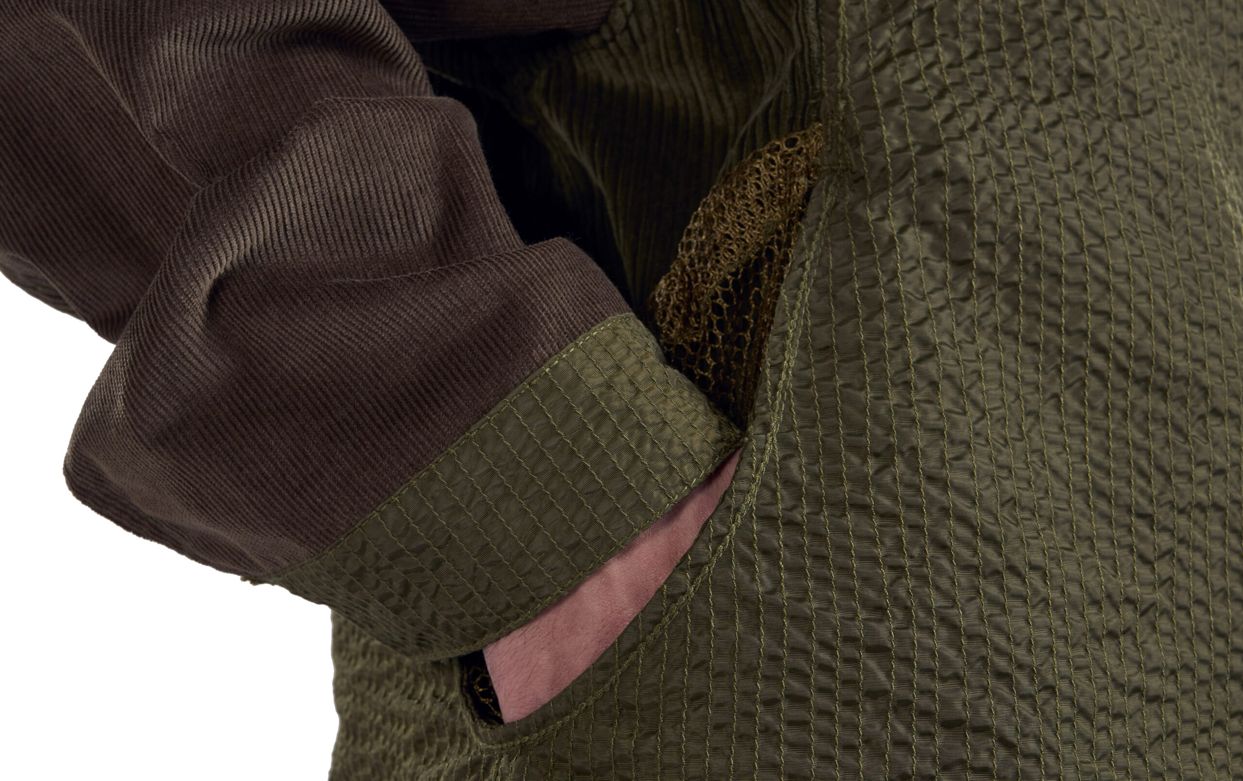 This piece features multi-textile fabrication with a rounded collar and wraparound hip pocket openings. It includes a zip front closure and YKK Conceal zip shoulder vents with deep mesh linings that double as pockets . Additional functionality comes through inset mesh pockets with bungee-adjustable openings, as well as bungee adjusters at the hem and snap-adjustable cuffs.