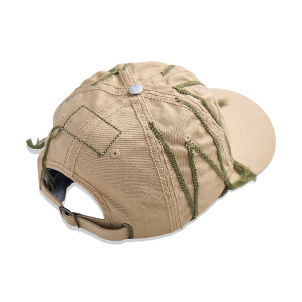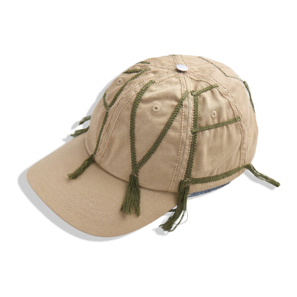 Classic six-panel twill cap in Beige. Signature Rope Stitch embroidery across ‘WAVE’ design on crown, and for tonal detailing across seams. Finished with a curved brim, strap adjuster, and custom YKK shank button detail.